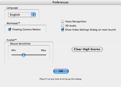 Causes the game's Preferences dialog to appear.