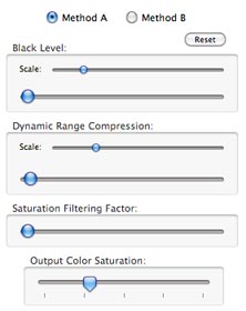 DSO EnhancerThis is the filter that does the serious work. It darkens the sky so space is black while enhancing the celestial objects. In the settings you'll see Method A and Method B. Method A is the best choice 80% of the time, but fiddle with each method on different objects and see what works best for you. The Black Level darkens space, and the Dynamic Range Compression slider brightens objects. The "Scale" setting above each gives you fine control over the sliders, but it does not affect the image. Changing the scale simply changes the range of the Black Level or Dynamic Range sliders. When using the DSO Enhancer, follow this basic procedure: |