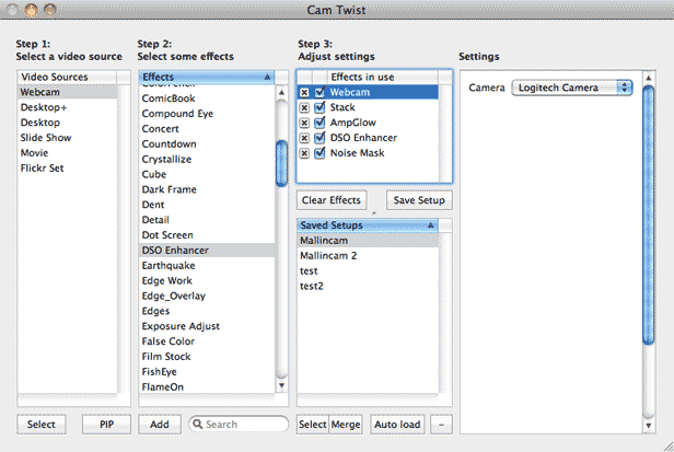 Proper Configuration is Critical!In order for the Astro Filter Pack to work properly, you must order the filters correctly in CamTwist. Below is the proper ordering (See the 'Effects in use' pane): |