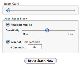 StackThis is a frame stacking filter that accumulates video frames over time. It is used to eliminate signal noise and to boost the image without the typical pixel grain that other boosting methods (such as brightness and gamma) cause. The Boost Gain slider brings out details in underexposed & dark images. This can work miracles on dark video signals! The Auto-Reset on Motion option will automatically reset the stack if it detects a significant change in the image. You should almost always leave this on and have the sensitivity set pretty high if not all the way to the maximum (to the left). The Time Intervals option lets you tell the stack to auto-reset at fixed time intervals (useful for fork-mounted telescopes which will have field rotation over time, or when you know your scope has difficulty tracking). |