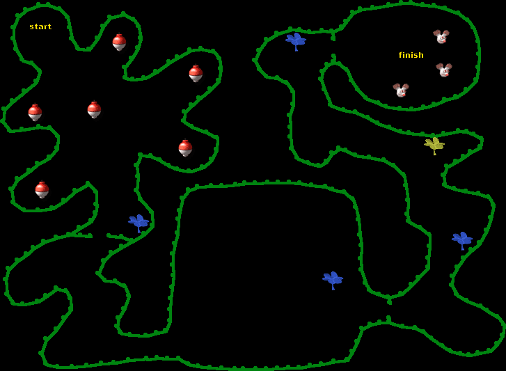 1. Catch Fish by jumping on the fishing bobbers.