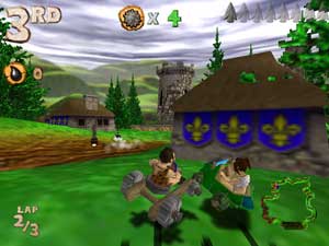Unlike most racing games where you simply hold down the acceleration button and never let go, Cro-Mag Rally requires a bit more interaction. In Cro-Mag Rally, speed kills - remember that. You've got to get used to letting go of the gas pedal and hitting the brakes, especially on the levels with tight turns like China and the Viking Village Yes, hitting the brakes slows you down, but in this racing game, "control" is more important than speed.