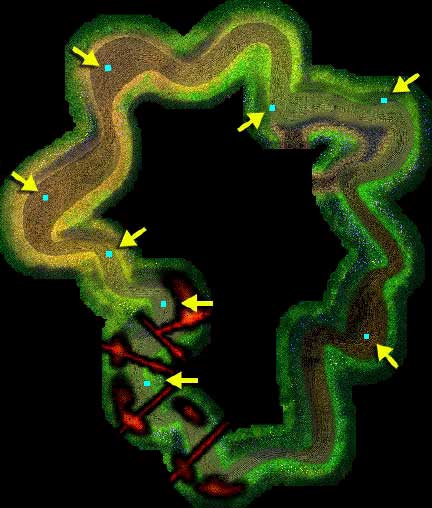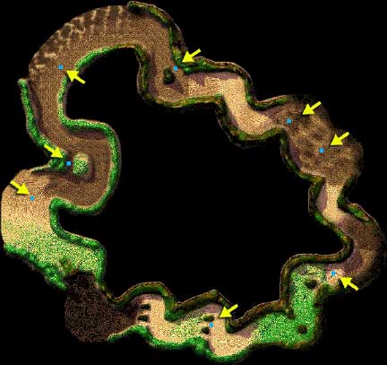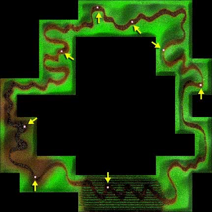 The arrowheads are difficult to find on this track because many of them are actually behind you as you drive. See the map for help...