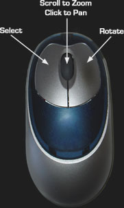 Zooming the Camera In / OutWith a 3-button mouse you spin the mouse's scroll wheel to zoom in/out. Otherwise, from the keyboard hold down the Option key and drag the mouse up/down to zoom in/out.