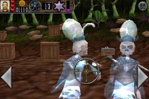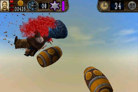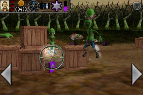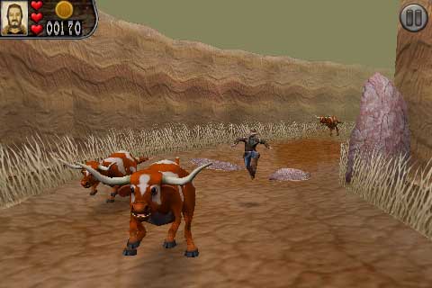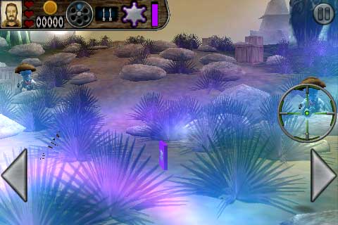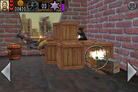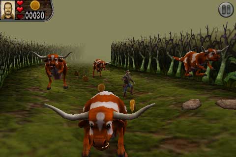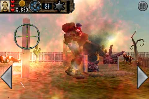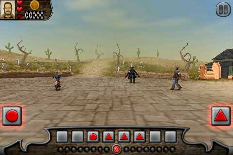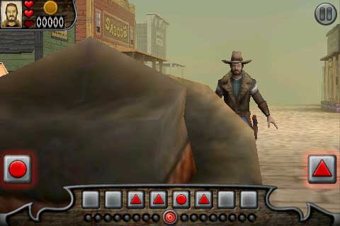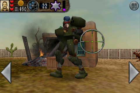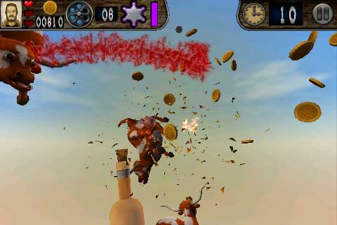 Billy Frontier is a space cowboy who's mission is to rid the galaxy of alien outlaws. This is the most diverse 3D game you'll find for the Apple iPhone / iPod Touch - it is a combination of adventure game and arcade game with a whole lot of blood spewing action in-between! You'll test your reflexes in Duels, see if you can outrun a stampeding herd of Kanga-Cows (half kangaroo, half cow), hunt down alien bandits in gun battles, and blast catapulted critters out of the sky in the Shooting Gallery! Billy Frontier is really four games in one: Dueling, Shootout, Stampede, and Target Practice. The graphics and audio are the best there is for an iPhone game, and if you like spaghetti westerns then you'll love Billy Frontier because it is a spaghetti space western with all the fixins! Those of you who are familiar with the original Mac version of Billy Frontier will be happy to know that we've actually changed the gameplay for the iPhone version and added some new features to the game, making the iPhone version the best version yet! |