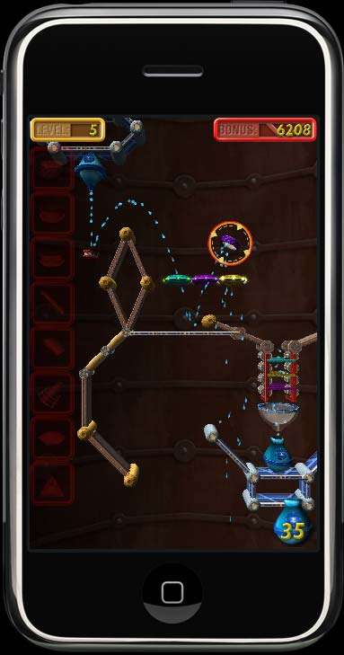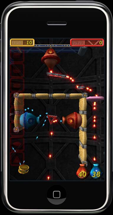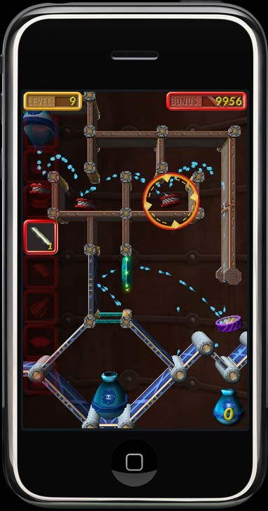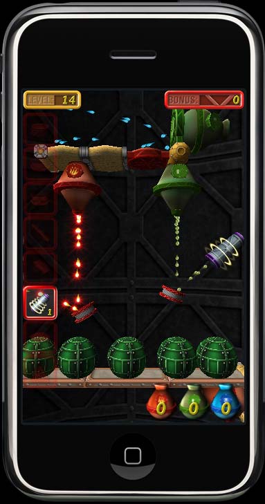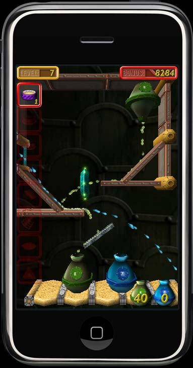Enigmo is the most unique game that you'll find for the iPhone or iPod Touch. It is a 3D puzzle game where you manipulate slides, bumpers, and other pieces to control streams of flowing liquid. Liquids (water, oil, and lava) fall from "droppers" and will bounce around the walls of a puzzle. You move and rotate the various puzzle pieces in order to divert the flow of the falling droplets so that they can reach their target. The faster you complete each level, the more bonus you will receive. New in version 4.0 is a multiplayer mode where you compete against other players over a 3G or WiFi network connection! It works on any Game Center enabled iPhone or iPod Touch running iOS 4.1 or later. |