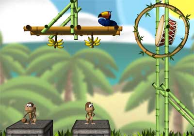 Your projectiles will slide and bounce off of the various items in a level, but one of the most important parts that you'll encounter on some levels are the Bongos. Bongos are the only parts other than the Monkeys that you can manipulate, and you can bounce Projectils and Monkeys off of them.