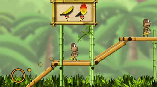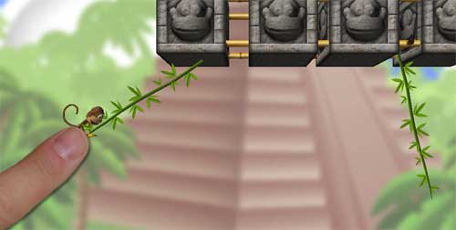 The Monkey's only way to move in a level is by swinging on a Vine. He can leap from Vine to Vine on certain levels. To make a Monkey leap off of a Vine you tap and drag on the Monkey, and then release to launch him. It is very similar to throwing Projectiles. The farther back you pull, the farther he'll jump from the Vine.