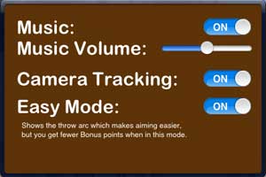 When On you'll see the dotted trajectory line when the Monkey is aiming a throw. This makes the game much easier, but you don't get as many Bonus points for accomplishing tasks. To get a higher score, play levels with this turned OFF. |