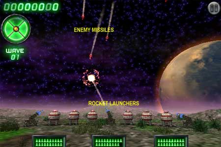Simply tap the screen to cause a rocket to be launched and detonated at the place that you tapped. You can use multiple fingers to launch multiple rockets at the same time, and Warheads automatically fires the rockets from the closest available launcher.