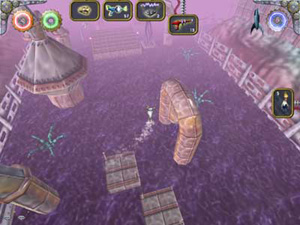 PLATFORM HOPPING Another way to cross some areas of the soap lake is to hop across the big and small platforms. Sometimes, you will have to Jump-Jet to get to the platforms, but other times you can simply jump from one to the next.