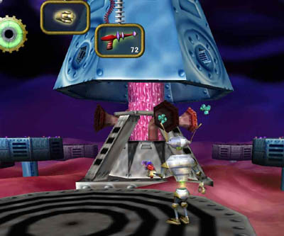 LEVEL MAP GENERAL TIPS This level takes place in the bowels of planet Snoth's core where the giant slime machine resides. You cannot touch the toxic slime which is all around you. You must remain on the platforms since falling onto the slime will cause great damage. With full health, Otto can survive 3 bounces off of the slime, but be careful, sometimes Otto will get stuck underneath a platform if he falls off and he won't be able to bounce back up. The gravity on this level is much lower than normal since you are in the center of the planet. As a result, Otto can jump higher and farther. Odds are that you will have a good supply of Jump-Jet fuel when you arrive at this level. Keep that in mind when hopping across the platforms because you can get through this level much faster and safer if you use your jump-jet to cross some of the complex areas. THE SLIME MACHINE At the end of this level is the Giant Slime Machine which you must destroy. It is guarded by plasma beams and ooze guns. Destroying the machine is fairly simple. First, just blast away the four plasma beam emitters which surround the central unit. Once you do this, the central unit will begins to open and close. Each time the dome opens, it will shoot harmful ooze at you. Shoot the ooze tubes to destroy them. Finally, when the ooze tubes are gone, blast the central slime tube to destroy the machine.