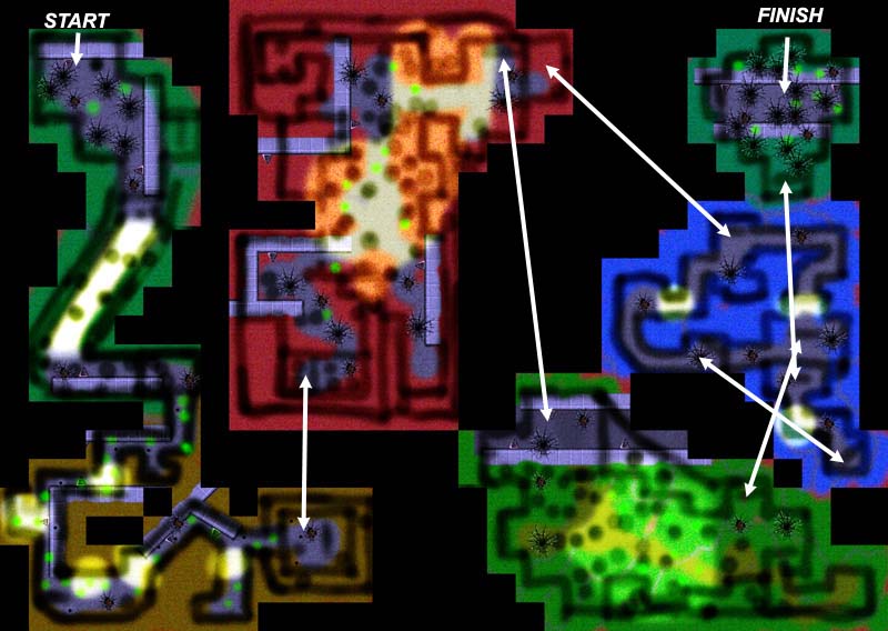 Trying to activate one of these doors from the other side will have no effect. Once a door is activated it will remain activated indefinitely. TELEPORTERS The teleporters are also activated by using a Supernova, and they will remain active indefinitely. There are 12 different teleporter pairs in this level, and they are identified by the symbols on their consoles. The symbol indicates where the teleporter will take you. Generally speaking, each teleporter will take you to a different colored areas as seen in the map above. As a rule of thumb you should always activate and use any inactive teleporter since it will generally advance you through the level. Toward the end of the level there are some teleporters which may take you back to an area that you've already seen.