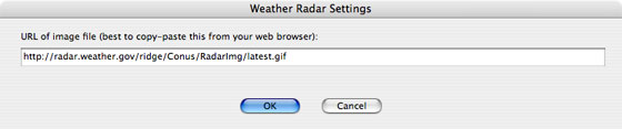 4. Type Command-V (or select Paste from the Edit menu) to paste the URL into the dialog. The next time you activate the Weather Radar item it will load the radar image from that address.
